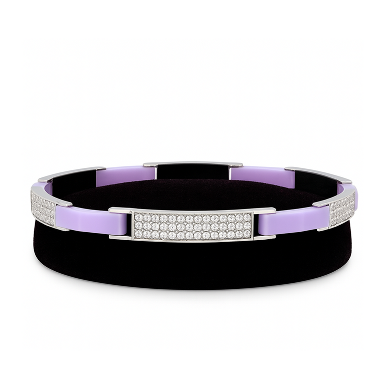 The Amethyst Grace Bracelet is a perfect balance of color and sophistication. Its radiant purple enamel links bring a pop of vibrancy, while the diamond-studded accents add refined sparkle. Crafted with precision and set in a polished silver-tone frame, this bracelet captures the beauty of modern elegance.