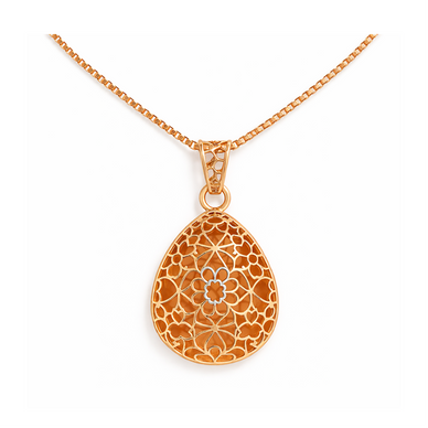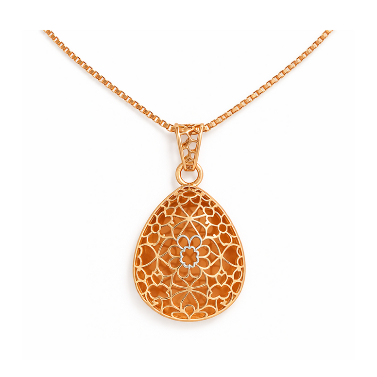 The 925 Silver Rose Gold Pendant with Chain is a classic jewellery piece designed to complement every style. Made from high-quality 925 sterling silver and enhanced with a luxurious rose gold polish, this pendant reflects refined craftsmanship and lasting beauty.