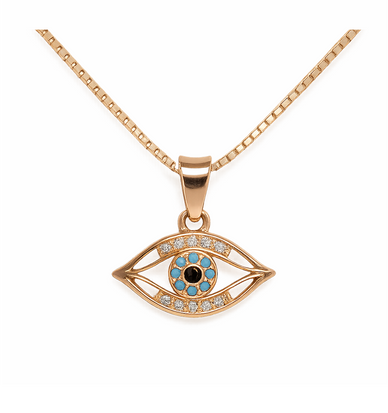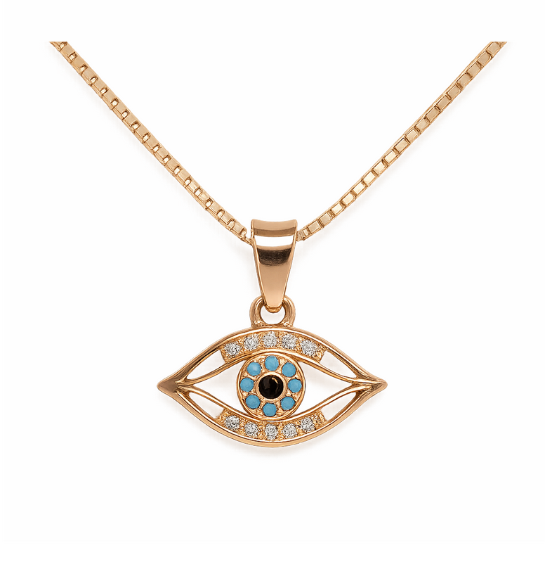 925 Silver Rose Gold Plated Aura Guard Evil Eye Pendant with Chain
