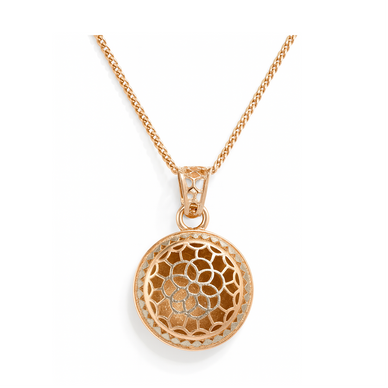 925 Silver Rose Gold Plated Roselace Bloom Round Floral Laser-Cut Pendant with Chain