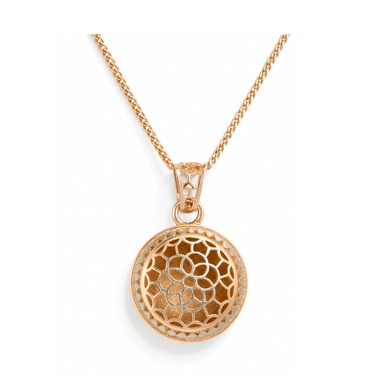 The openwork round silhouette allows light to pass through beautifully, creating a subtle shimmer with every movement. Paired with a matching chain, the pendant sits elegantly on the neckline, offering a comfortable and balanced fit. Lightweight and versatile, it complements both modern and traditional outfits, making it perfect for daily wear, festive occasions, or thoughtful gifting.